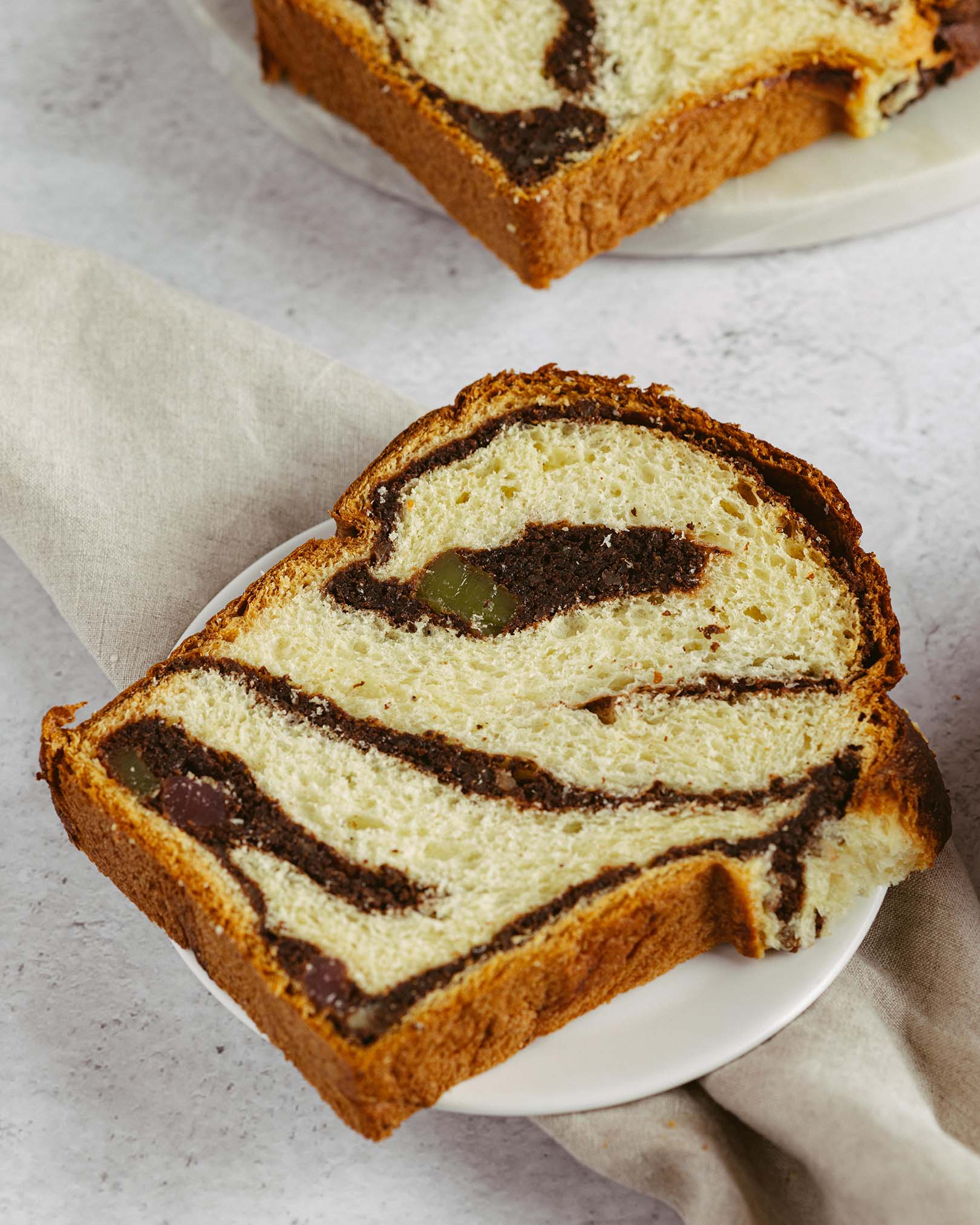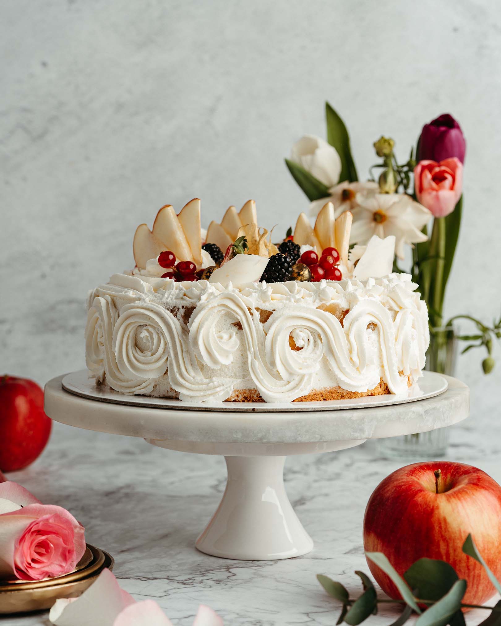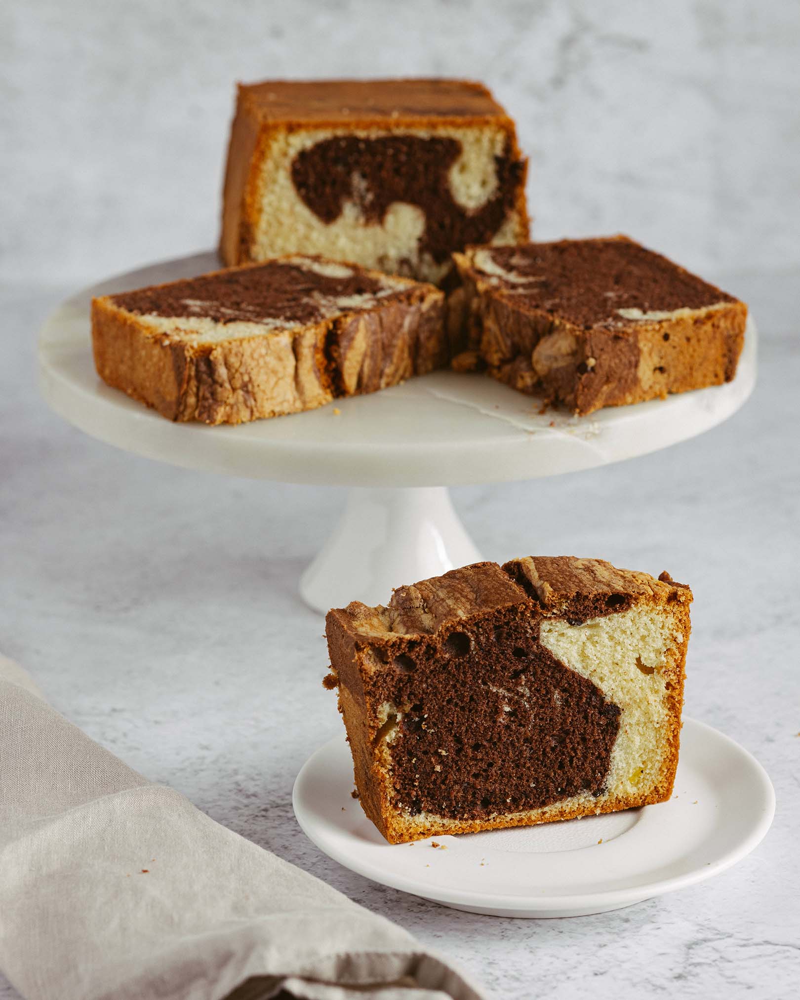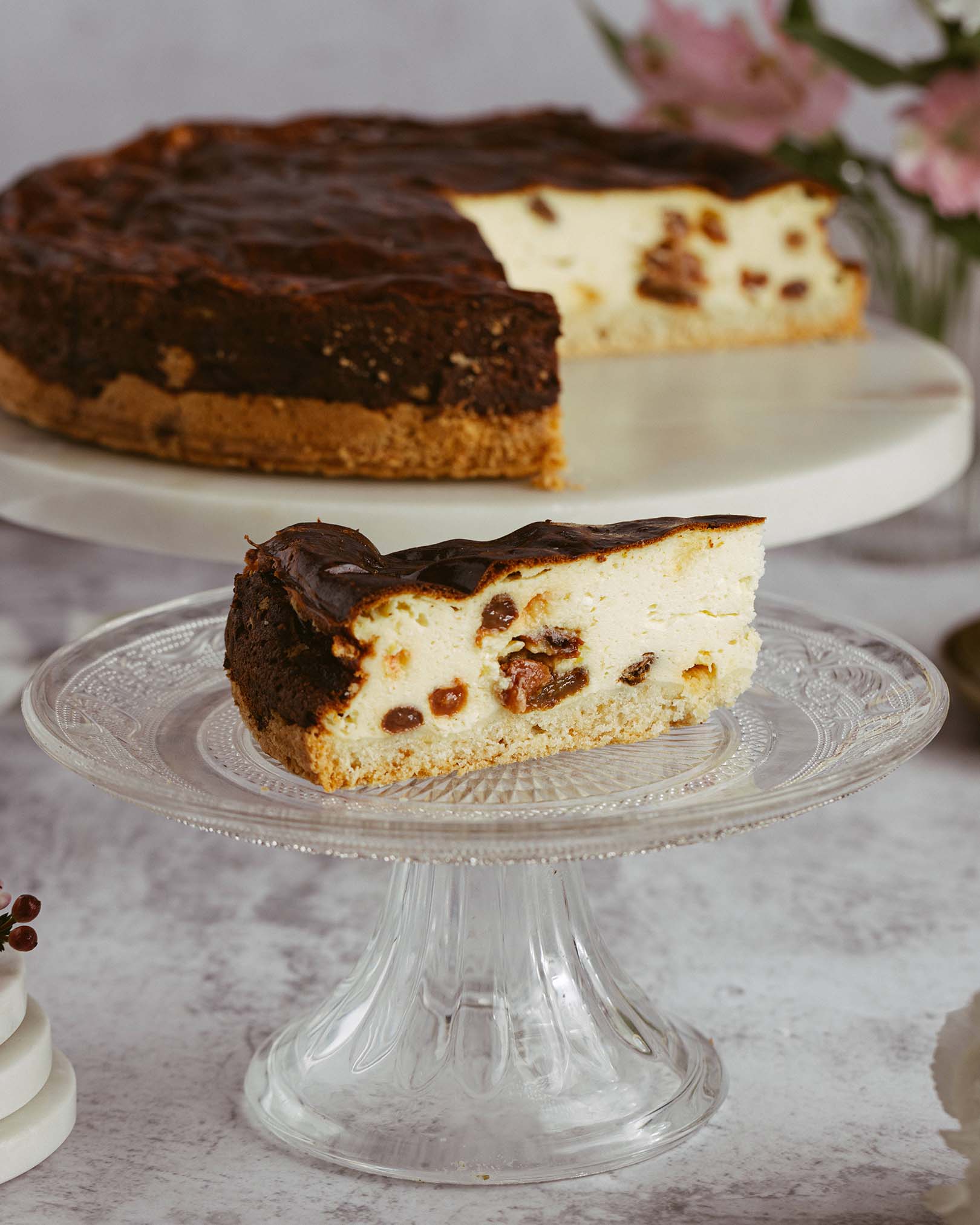 blat pandișpan alb, pralin crocant de ciocolată cu lapte și alune, mousse de ciocolată cu lapte, alune caramelizate, panna cotta vanilie, mousse de ciocolată albă